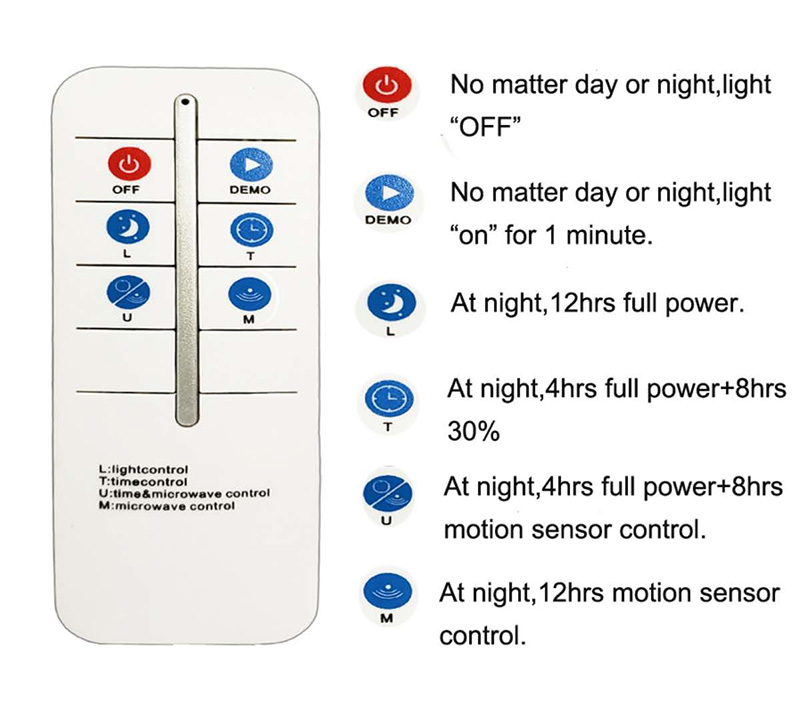- Amb control remot, tecnologia UVA, ofereix una alta resistència a la corrosió, operació de control remot de 30 m, 4 modes d'il·luminació.